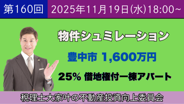 第160回 物件シミュレーション 豊中市 1600万円 25% 借地権付一棟アパート